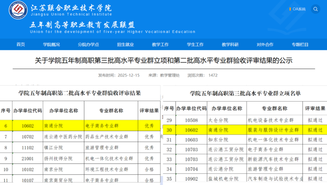 近日,江苏联合职业技术学院高水平专业群遴选与验收评审结果正式公布。